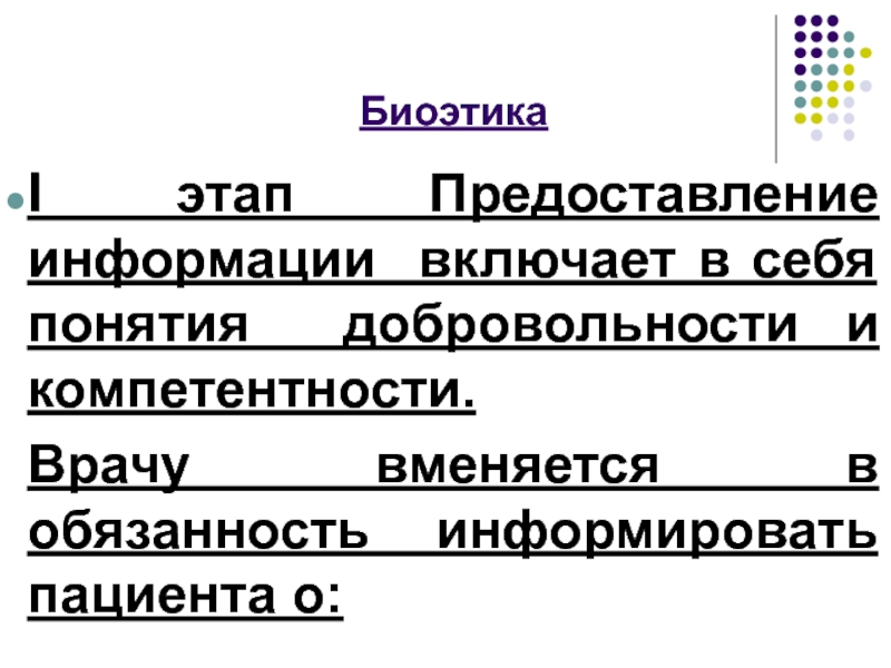 Предоставление ему необходимой информации (о состоянии здоровья и предлагаемых
