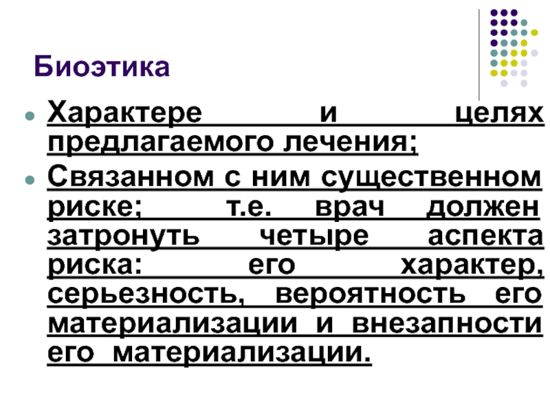 врач должен затронуть четыре аспекта риска: его характер, серьезность, вероятность
