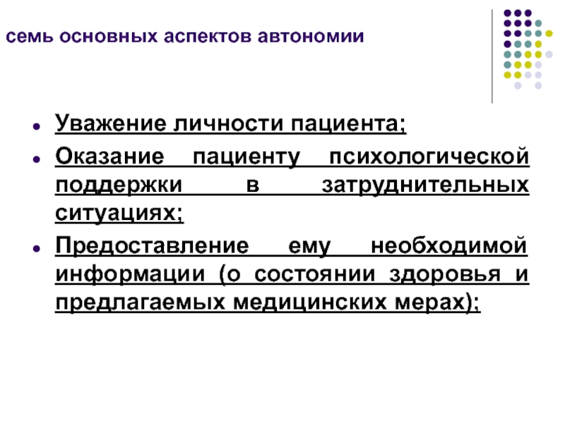 моментов. Уважение автономии индивида является одной из основополагающих ценностей цивилизованного образа жизни.