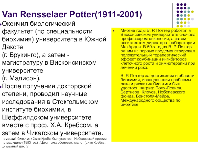 Слайд 6Van Rensselaer Potter(1911-2001)