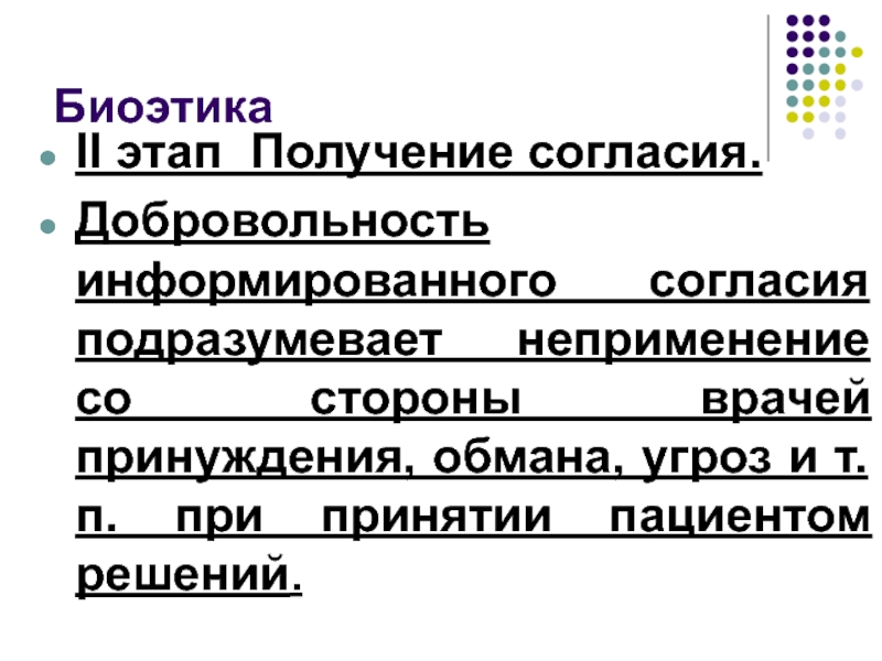 Добровольность информированного согласия подразумевает неприменение со стороны