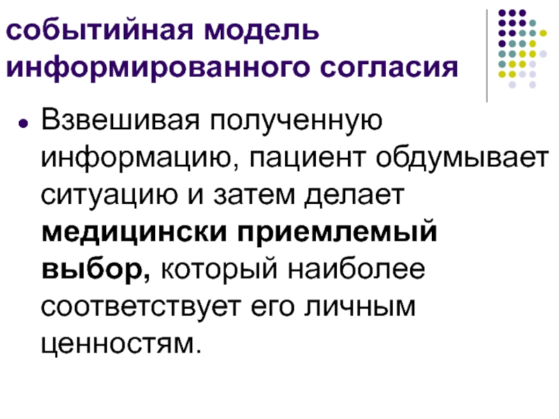 Существуют две основные модели информированного согласия – событийная и процессуальная