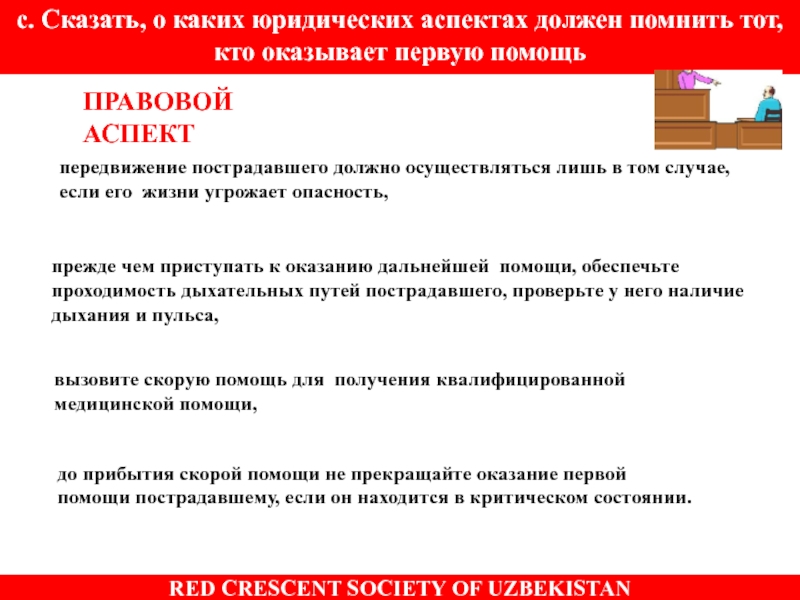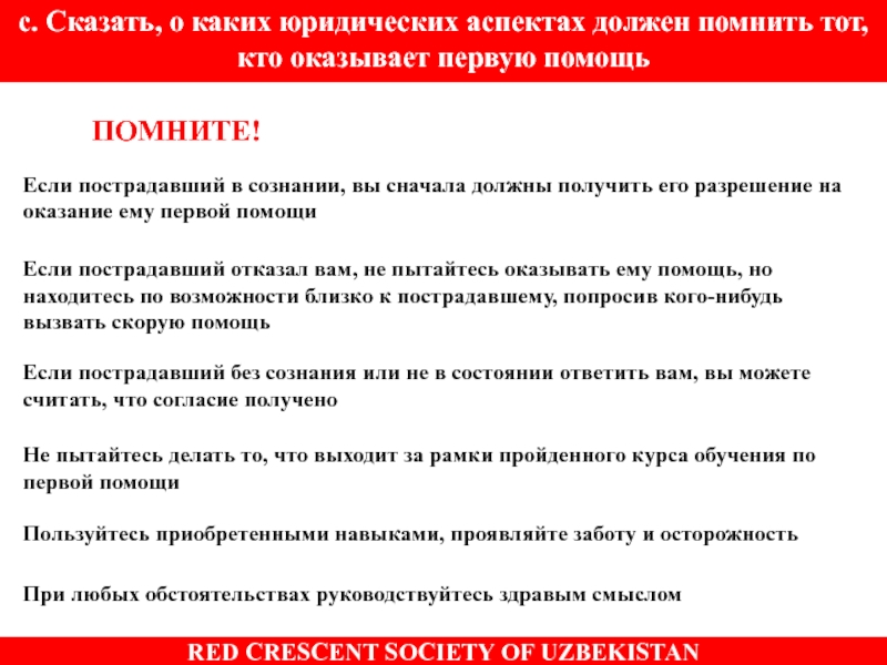 c. Cказать, о каких юридических аспектах должен помнить тот, кто оказывает первую помощь