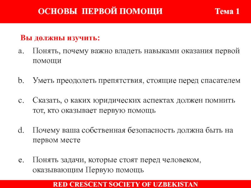ОСНОВЫ ПЕРВОЙ ПОМОЩИ Тема 1