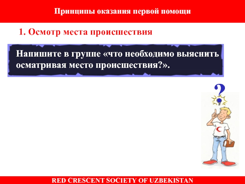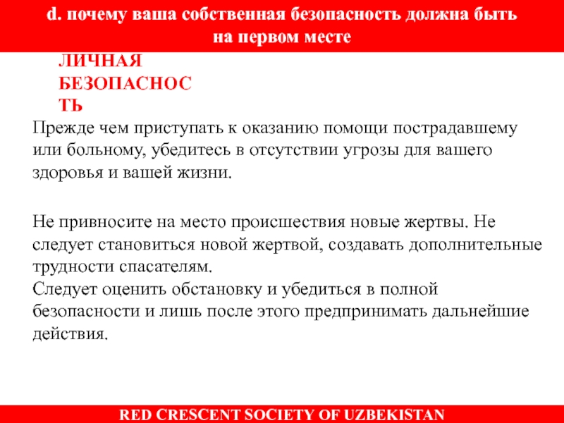 Прежде чем приступать к оказанию помощи пострадавшему или больному, убедитесь в отсутствии угрозы для вашего здоровья и вашей жизни.