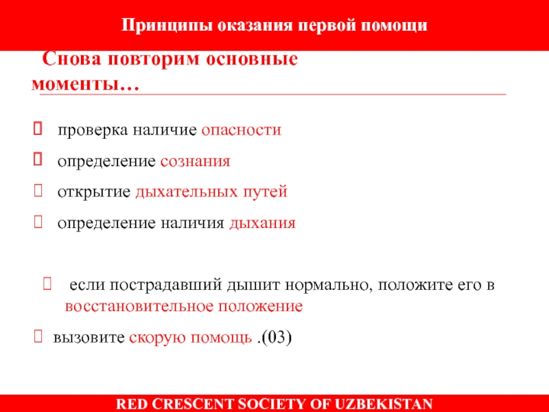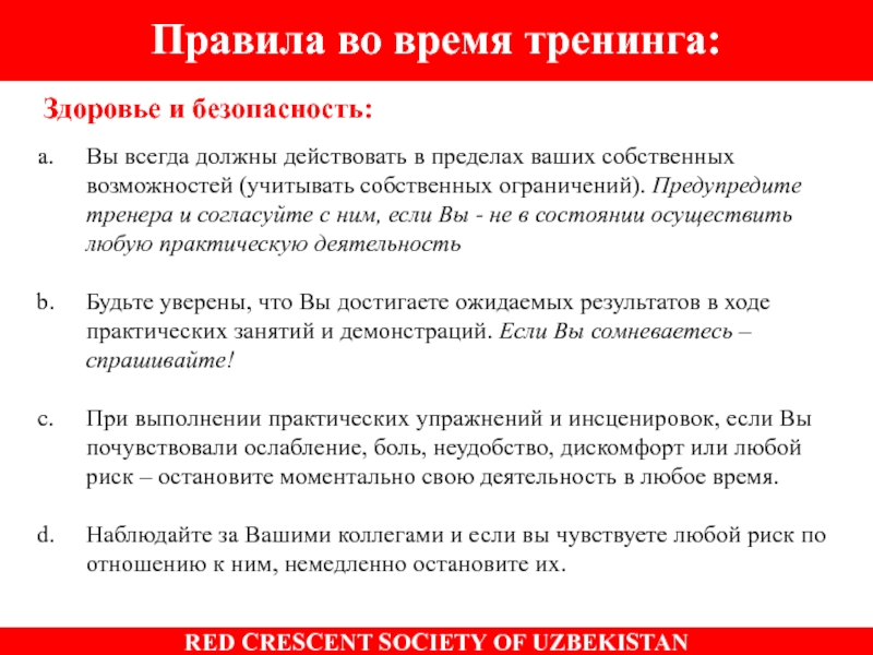 Не пытайтесь делать то, что выходит за рамки пройденного курса обучения по первой помощи