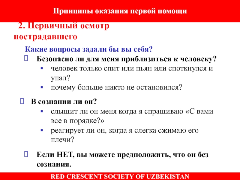 Если пострадавший в сознании, вы сначала должны получить его разрешение на оказание ему первой помощи