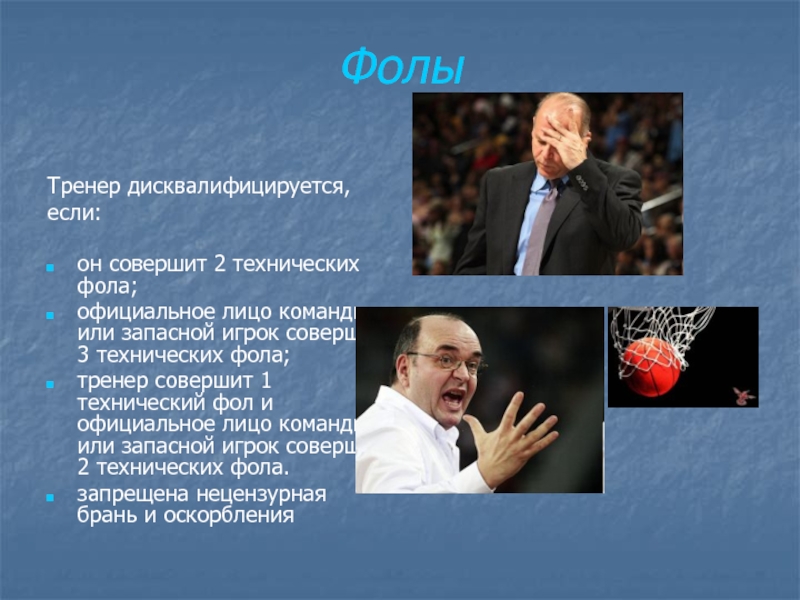 тренер совершит 1 технический фол и