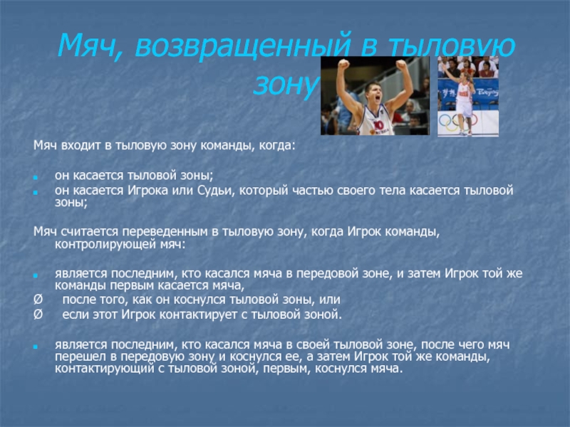 Слайд 12Мяч, возвращенный в тыловую зону