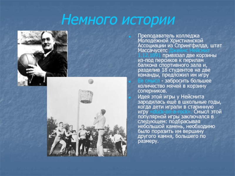 Джеймс Нейсмит 1.12.1891 привязал две корзины из-под персиков к перилам