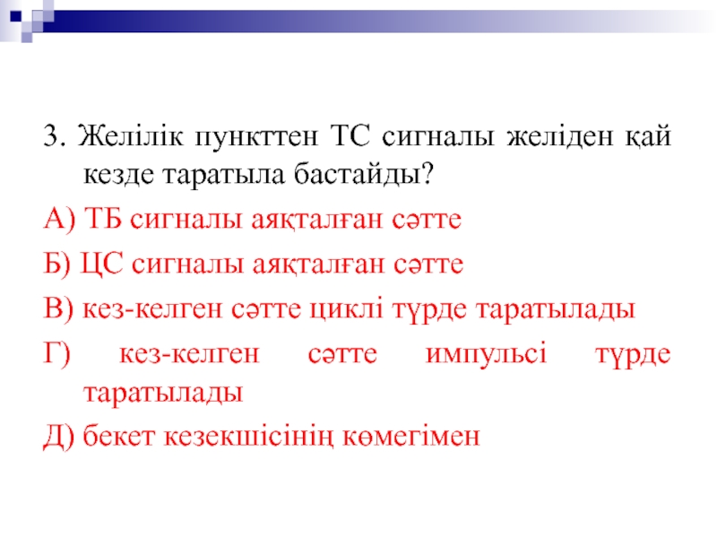 3. Желілік пункттен ТС сигналы желіден қай кезде таратыла бастайды? А) ТБ сигналы аяқталған сәттеБ) ЦС сигналы