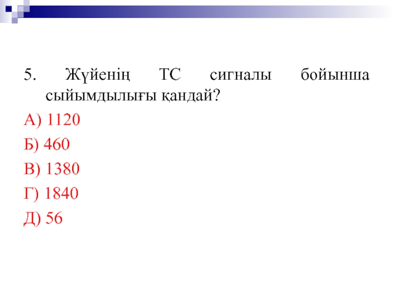 5. Жүйенің ТС сигналы бойынша сыйымдылығы қандай? А) 1120Б) 460В) 1380Г) 1840Д) 56