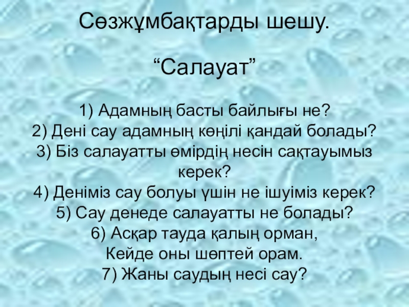 5. Сөзжұмбақ шешу (Денсаулық,тазалық,салауат тақырыбында)