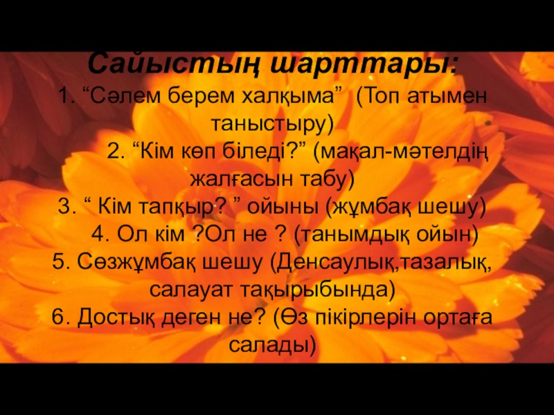 6. Достық деген не? (Өз пікірлерін ортаға салады)