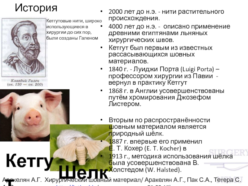 Кетгутовые нити, широко использующиеся в хирургии до сих пор, были созданы Галеном