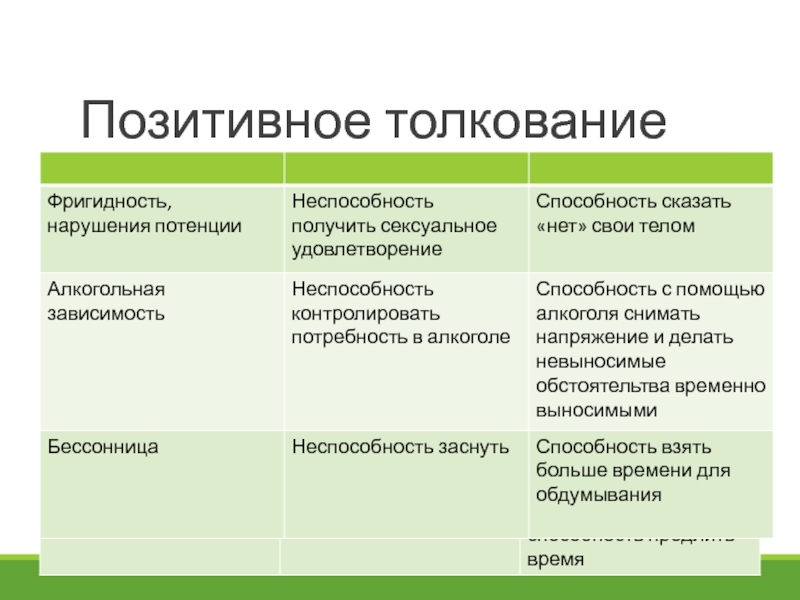 Позитивное толкование симптома – это поиск функции и смысла симптома