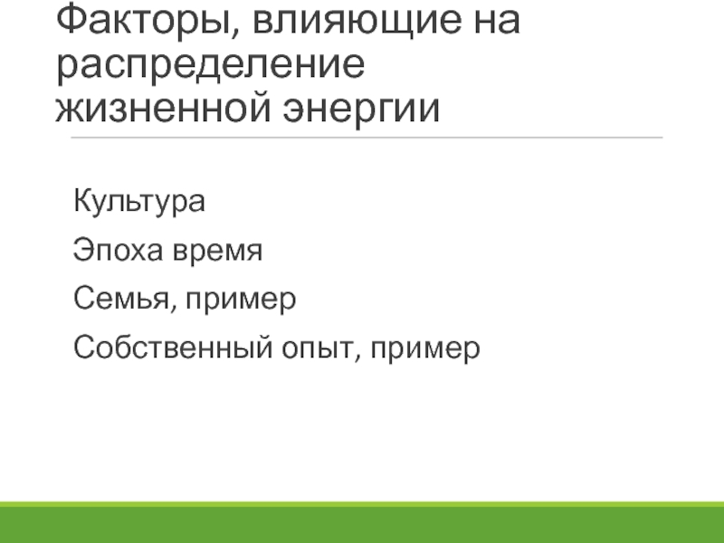 Слайд 35Факторы, влияющие на распределение жизненной энергии