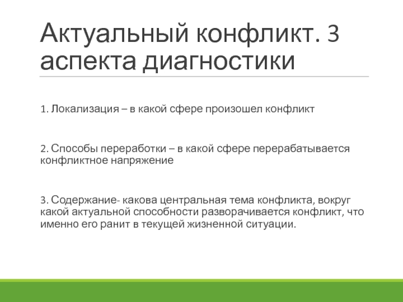 Слайд 36Актуальный конфликт. 3 аспекта диагностики