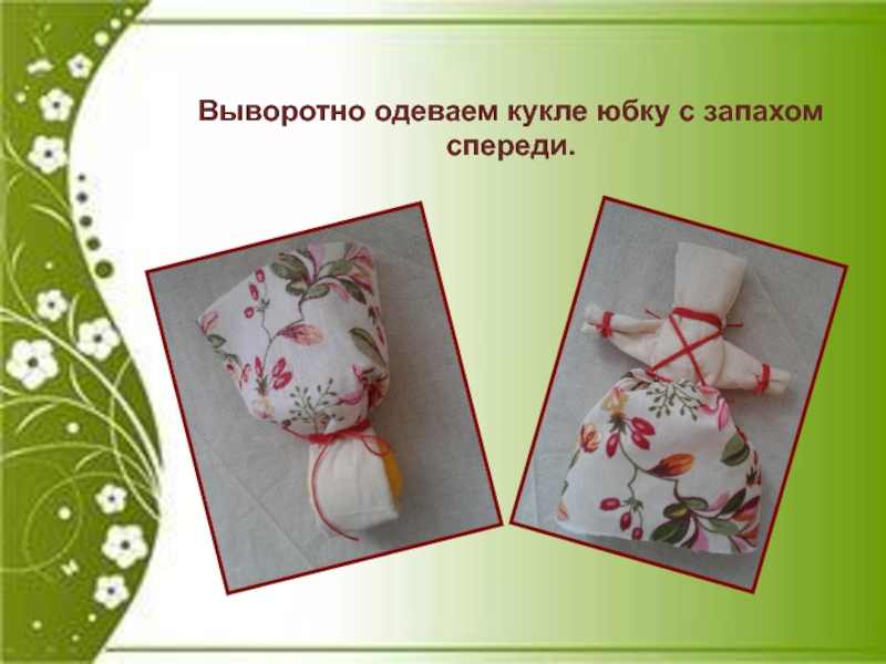 Слайд 7Выворотно одеваем кукле юбку с запахом спереди.