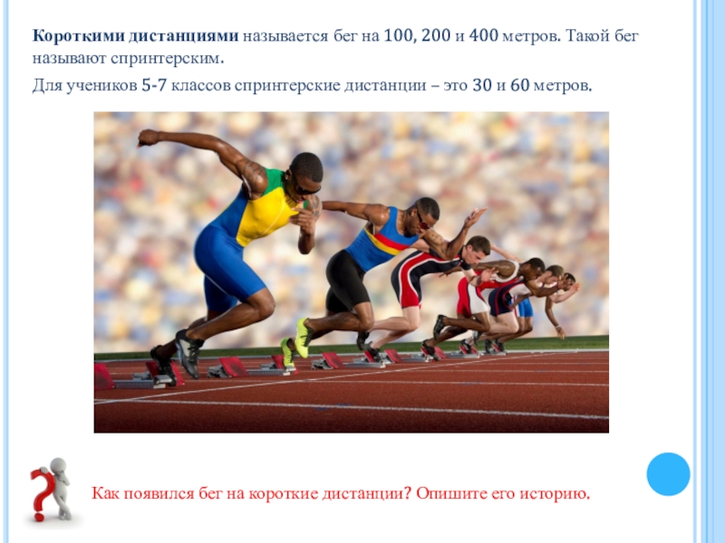 – это 30 и 60 метров.Как появился бег на короткие дистанции? Опишите его историю.