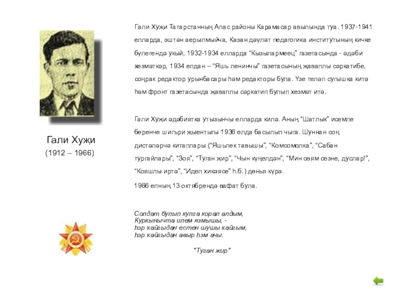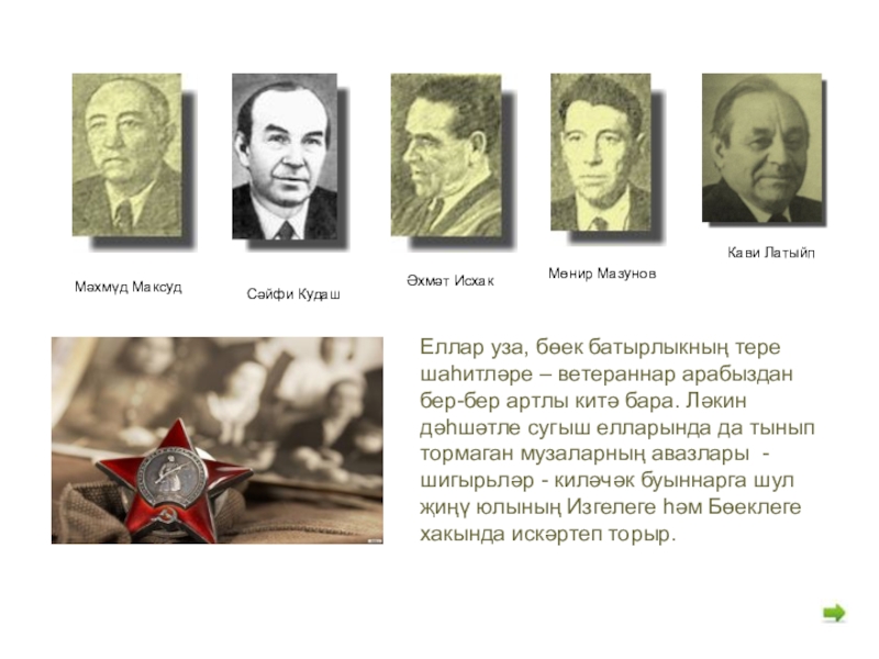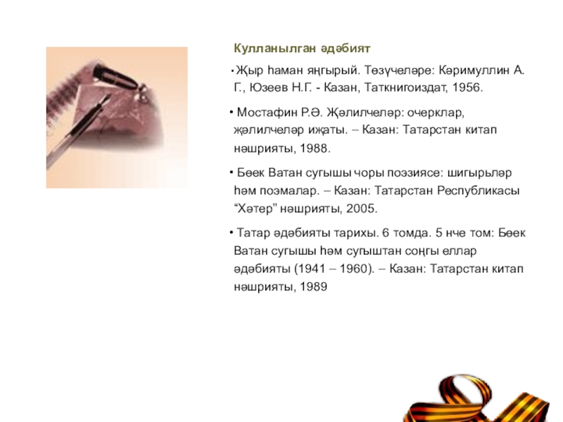 Слайд 5"Без, Татарстан язучылары, кулларыбызда каләм hәм корал килеш, данлыклы Кызыл