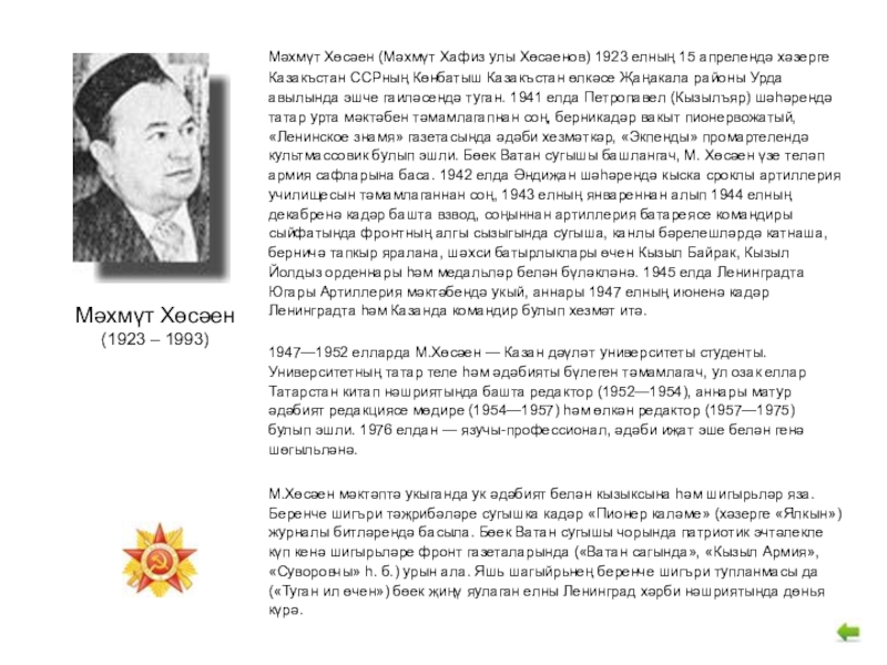 Слайд 91 Мәхмүт Хөсәен (Мәхмүт Хафиз улы Хөсәенов) 1923