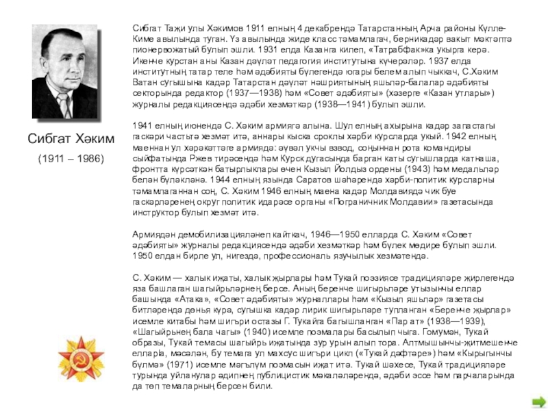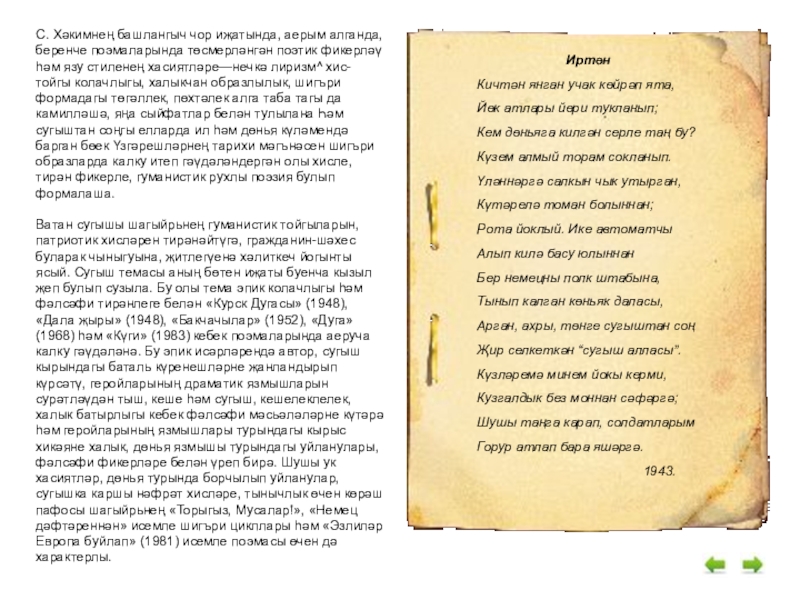 Слайд 89С. Хәкимнең башлангыч чор иҗатында, аерым алганда, беренче поэмаларында төсмерләнгән
