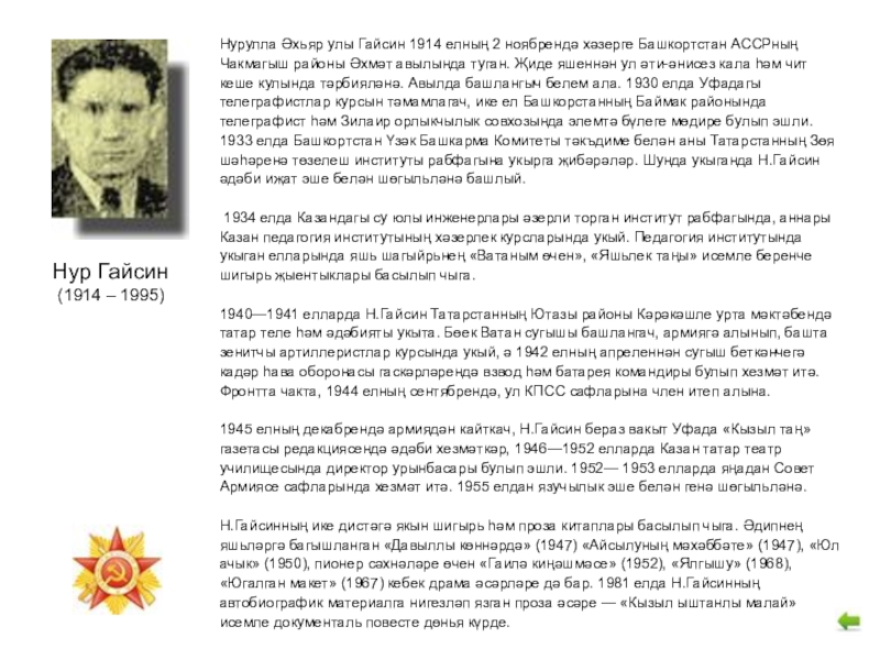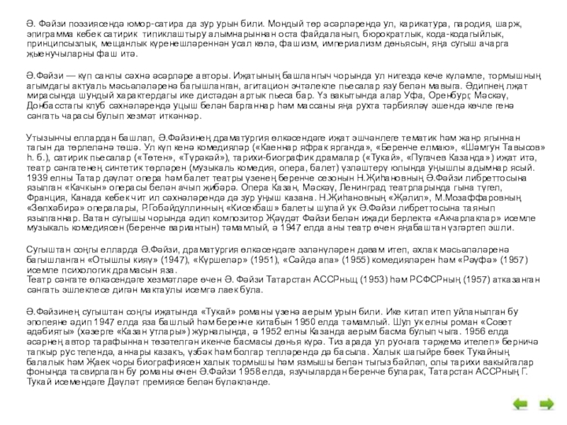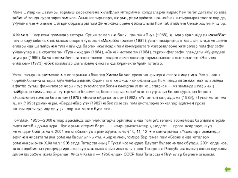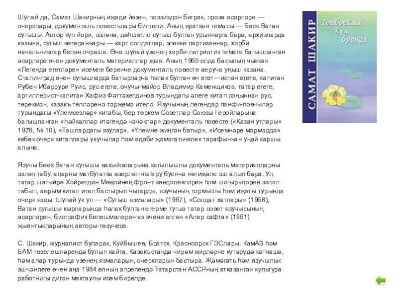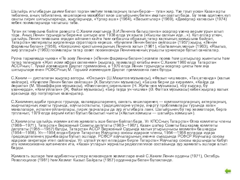 Слайд 94Шулай да, Самат Шакирның иҗади йөзен, поэзиядән бигрәк, проза әсәрләре