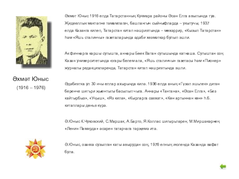 Слайд 95 Әхмәт Юныс 1916 елда Татарстанның Кукмара районы