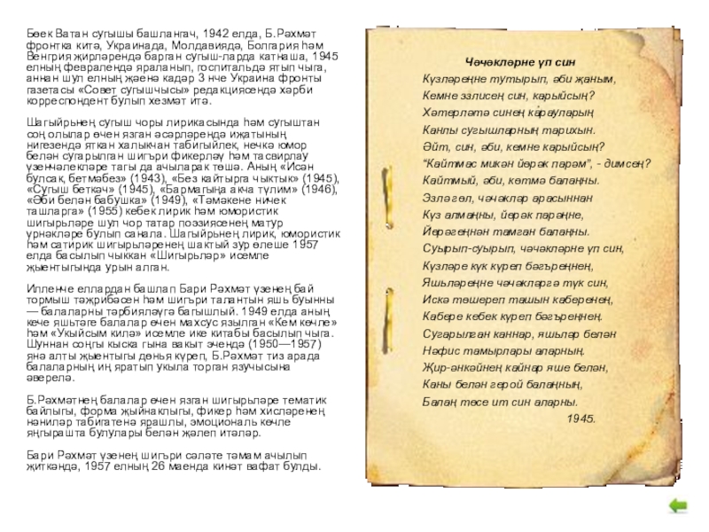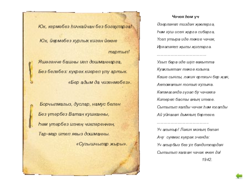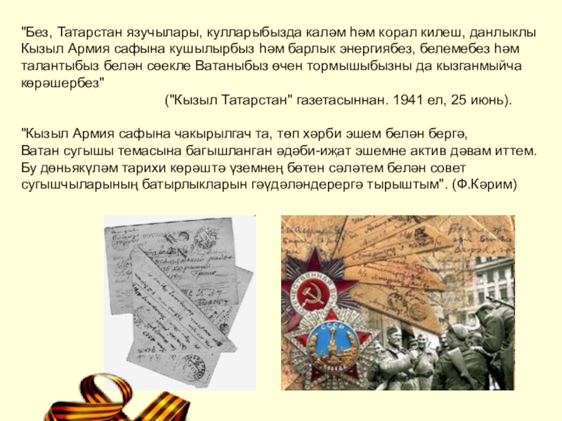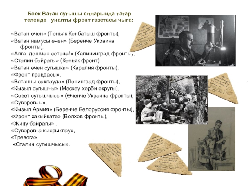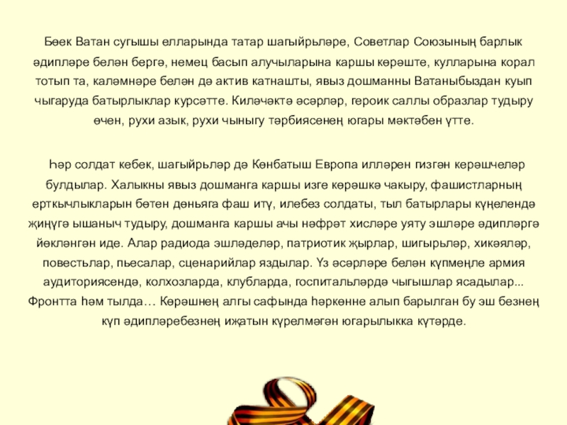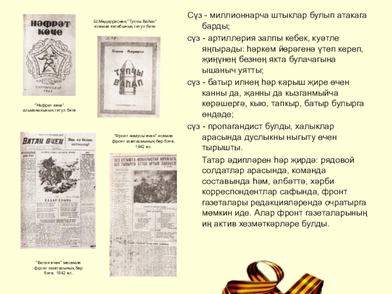 Слайд 4 Бөек Ватан сугышы елларында татар телендә