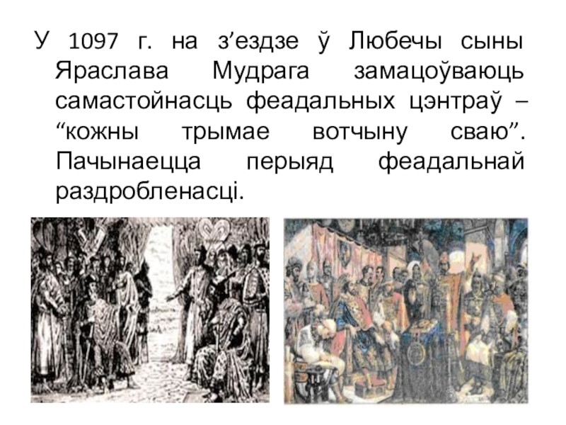 Слайд 14У 1097 г. на з’ездзе ў Любечы сыны Яраслава Мудрага