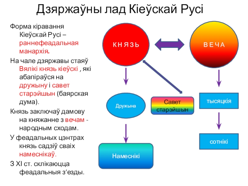 Князь заключаў дамову на княжанне з вечам - народным сходам.