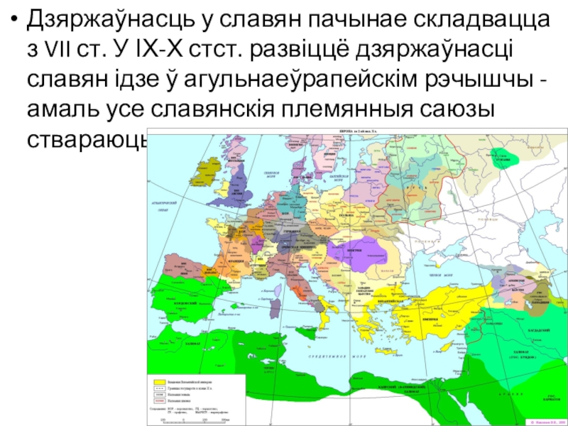Слайд 4Дзяржаўнасць у славян пачынае складвацца з VII ст. У ІХ-Х