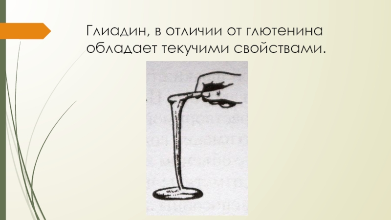 Слайд 8Глиадин, в отличии от глютенина обладает текучими свойствами.