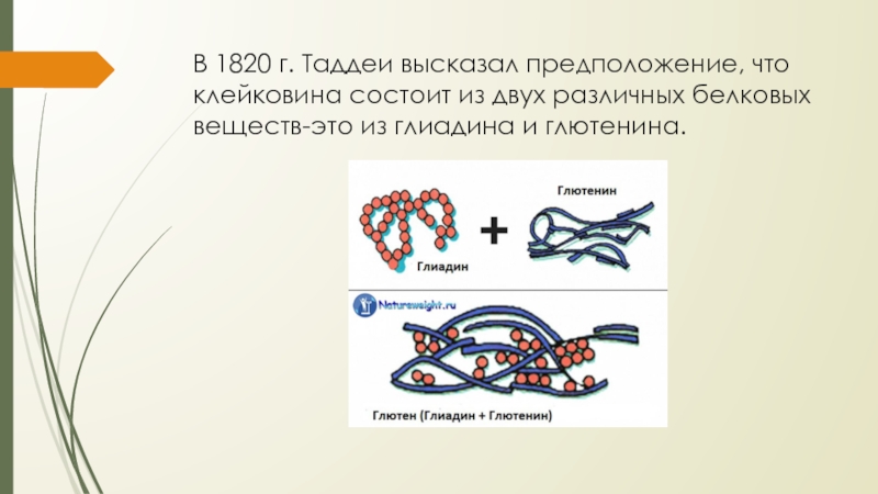 В 1820 г. Таддеи высказал предположение, что клейковина состоит из двух различных белковых веществ-это из глиадина и
