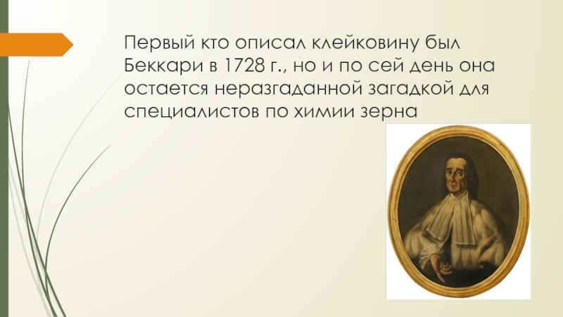Слайд 3Первый кто описал клейковину был Беккари в 1728 г., но