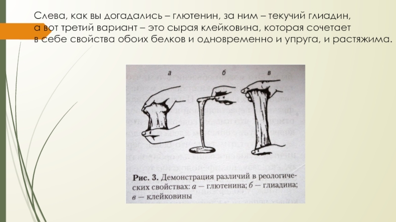 Слайд 14Слева, как вы догадались – глютенин, за ним – текучий