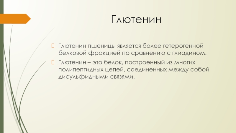 ГлютенинГлютенин пшеницы является более гетерогенной белковой фракцией по сравнению с глиадином.Глютенин – это белок, построенный из многих