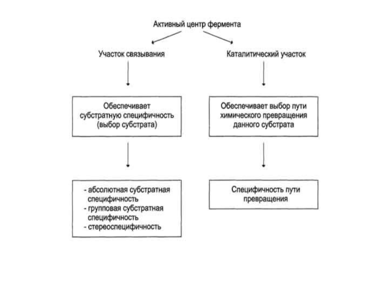 абсолютную субстратную специфичность (катализ 1 субстрата) - аргиназа;