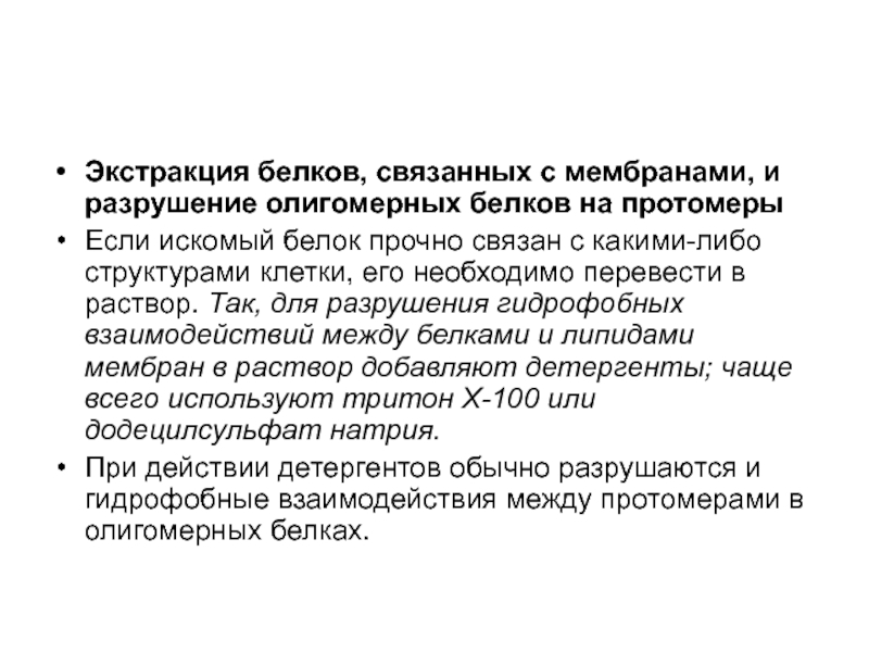 Например, некоторые белки легче растворяются в слабом солевом растворе, чем в дистиллированной воде. С другой стороны, увеличение концентрации нейтральных солей может способствовать вьшадению определённых белков в осадок. Денатурирующие агенты, присутствующие в растворе, также снижают растворимость белков.