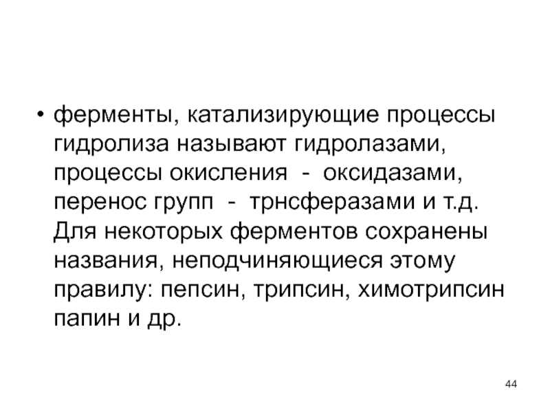 Слайд 44ферменты, катализирующие процессы гидролиза называют гидролазами, процессы окисления - оксидазами,