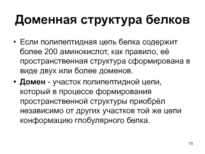 Домен - участок полипептидной цепи, который в процессе формирования пространственной структуры приобрёл независимо от других участков той же цепи конформацию глобулярного белка.