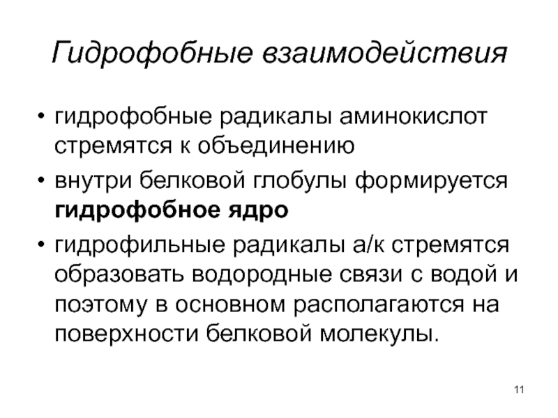 гидрофильные радикалы а/к стремятся образовать водородные связи