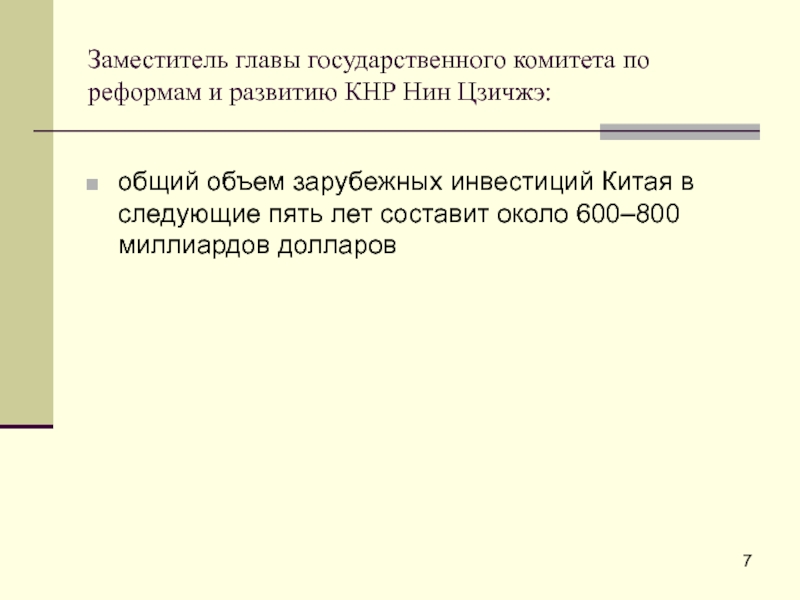 Слайд 7Заместитель главы государственного комитета по реформам и развитию КНР Нин