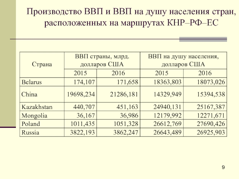Слайд 9Производство ВВП и ВВП на душу населения стран, расположенных на