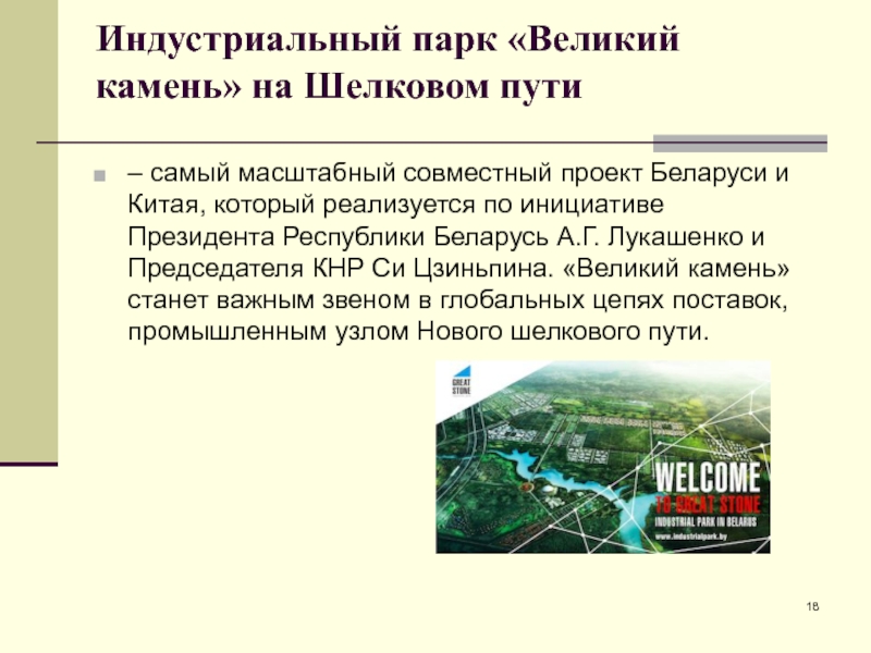 Слайд 18Индустриальный парк «Великий камень» на Шелковом пути