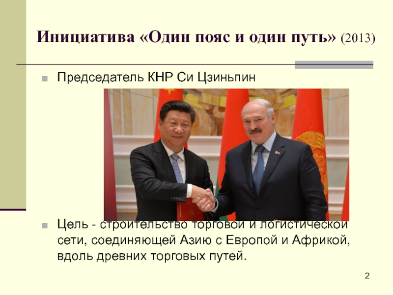 Слайд 2Инициатива «Один пояс и один путь» (2013)