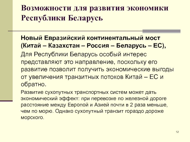 Слайд 12Возможности для развития экономики Республики Беларусь