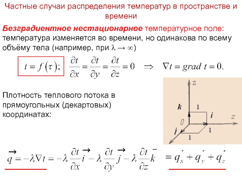 Слайд 8Плотность теплового потока в прямоугольных (декартовых) координатах: