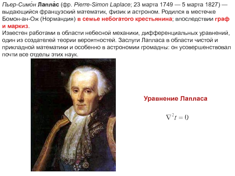 Пьер-Симо́н Лапла́с (фр. Pierre-Simon Laplace; 23